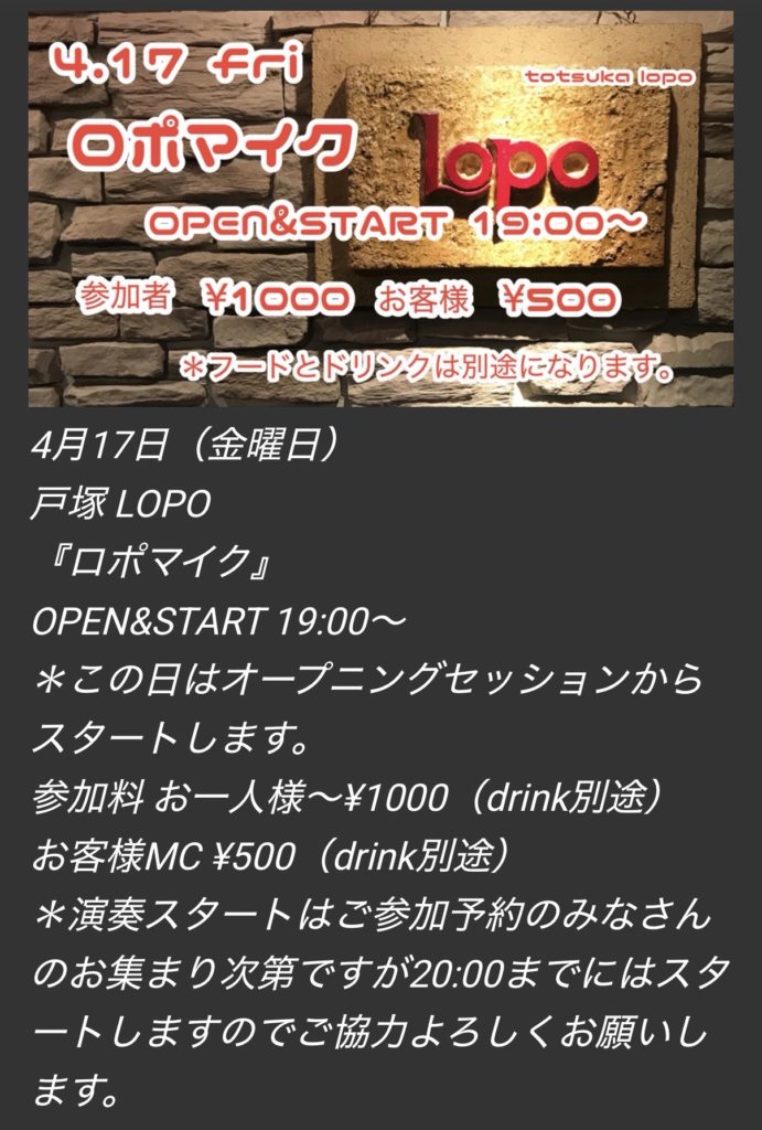 ロポマイクとはロポ的オープンマイクのことです(๑・̑◡・̑๑)