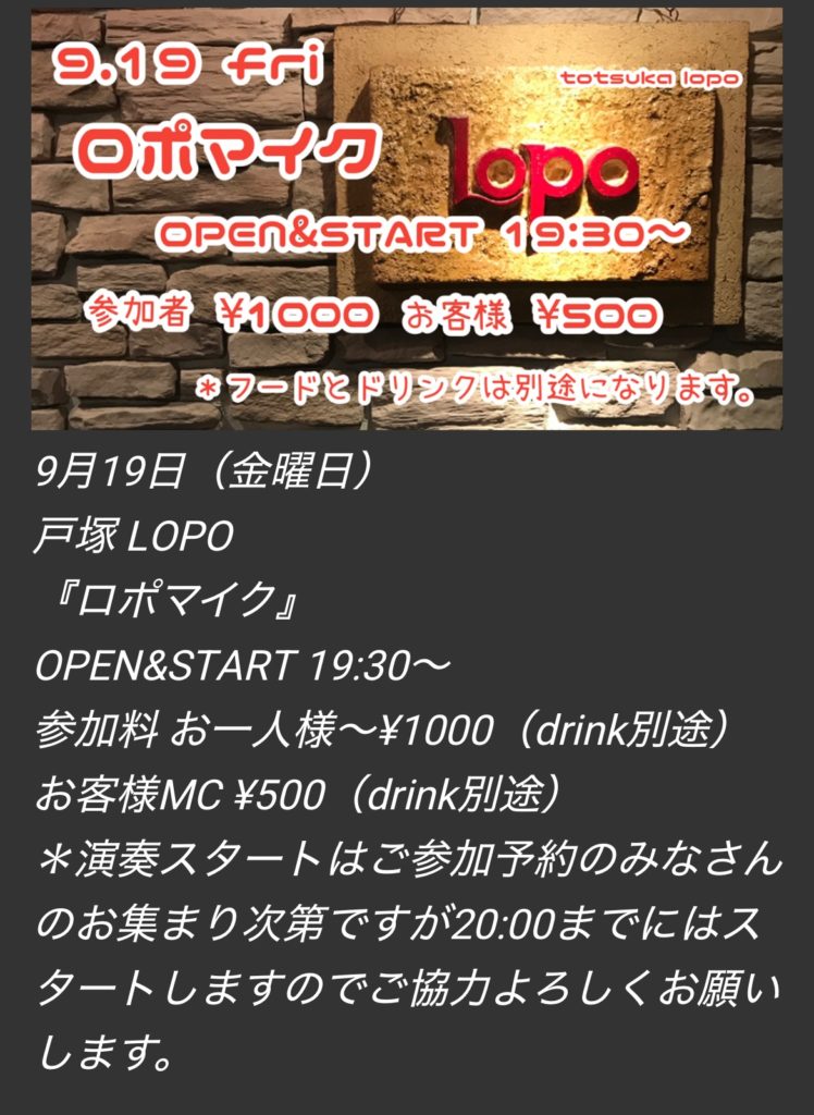ロポマイクとはロポ的オープンマイクのことです(๑・̑◡・̑๑)