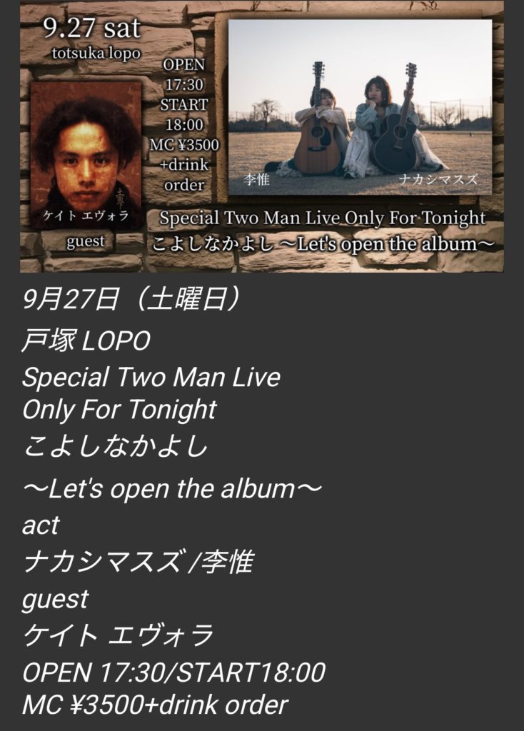 ご予約の仕方はブッキング担当のフニーのmail、SNS関連のDMにて受付ますので、ご連絡お待ちしております。